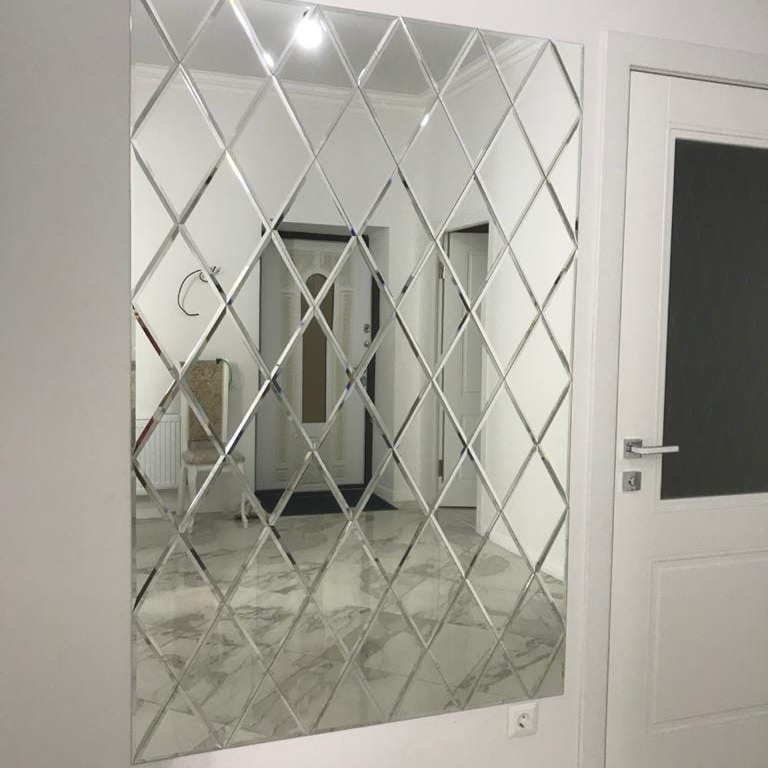 Использована зеркальная квадратная плитка с фацетом.